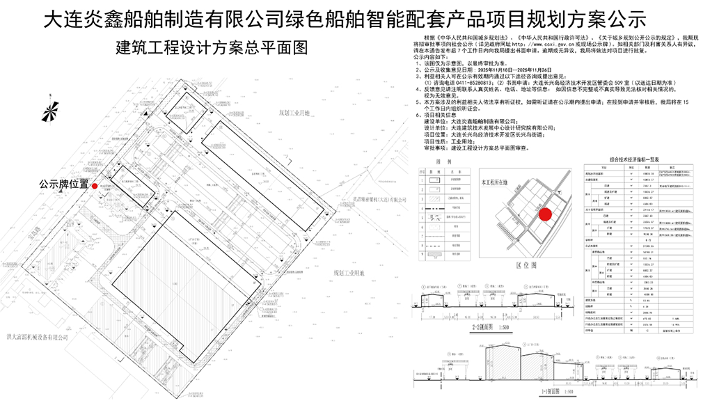 大连炎鑫船舶制造有限公司绿色船舶智能配套产品项目规划方案公示