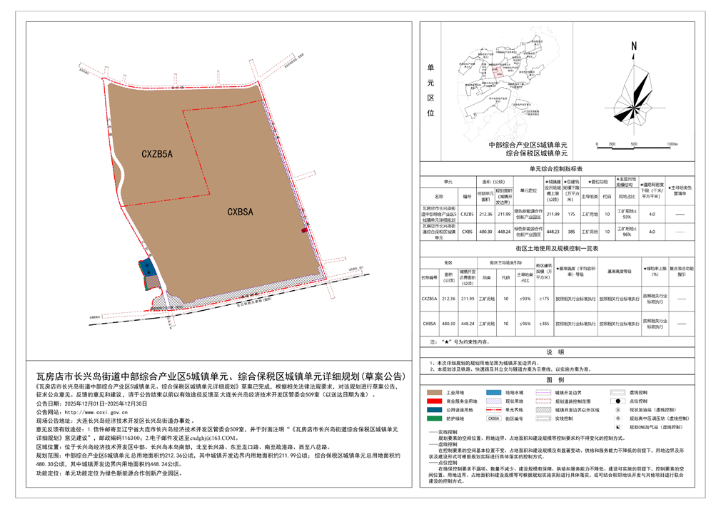瓦房店市长兴岛街道中部综合产业区5城镇单元、综合保税区城镇单元详细规划(草案公告)
