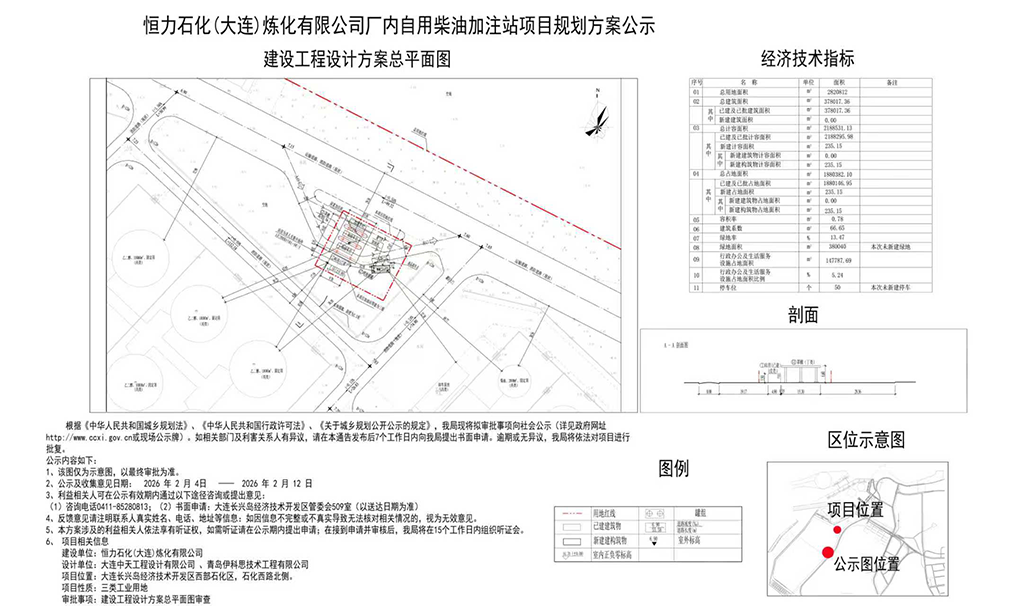 恒力石化(大连)炼化有限公司厂内自用柴油加注站项目规划方案公示