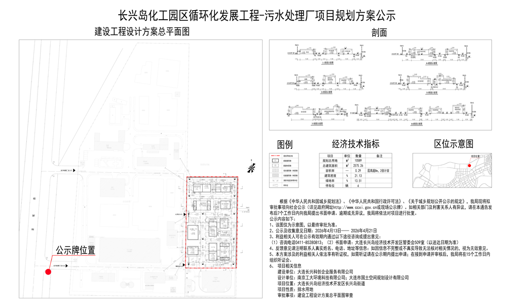 长兴岛化工园区循环化发展工程-污水处理厂项目规划方案公示