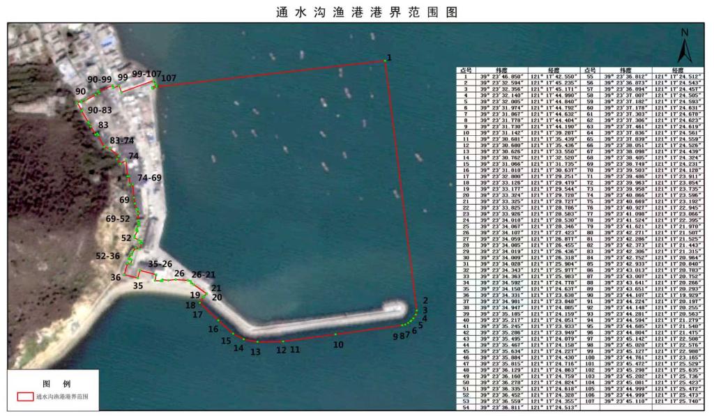 第五条 渔港港界范围总面积为21.3521公顷,其中水域面积18.6193公顷,陆域面积2.7328公顷。具体界址点坐标详见港界范围图。