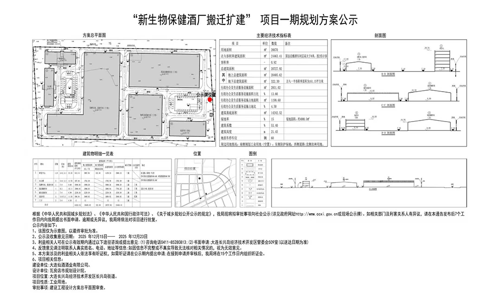 “新生物保健酒厂搬迁扩建”项目一期规划方案公示
