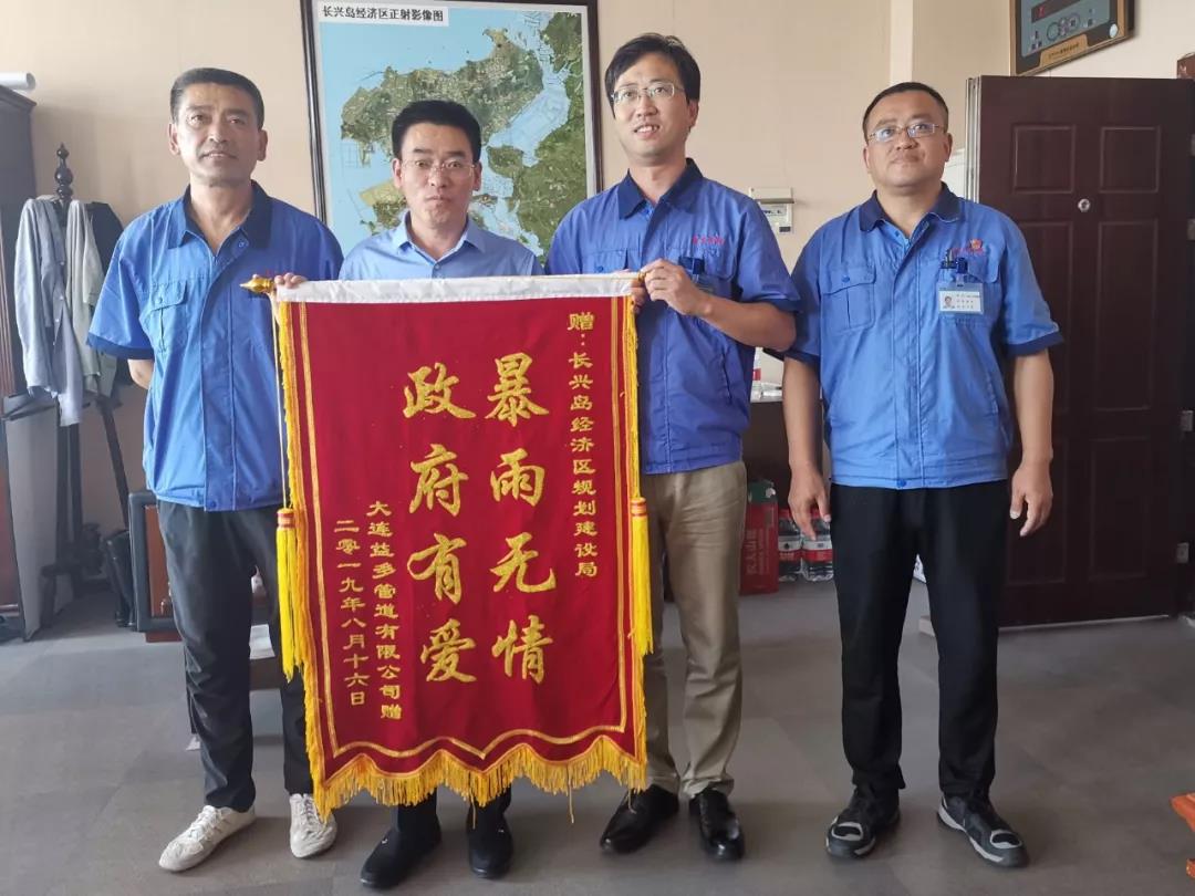 近日,长兴岛经济区规划建设局收到一面写有“暴雨无情,政府有爱”的锦旗和感谢信,这面锦旗来自大连益多管道有限公司。