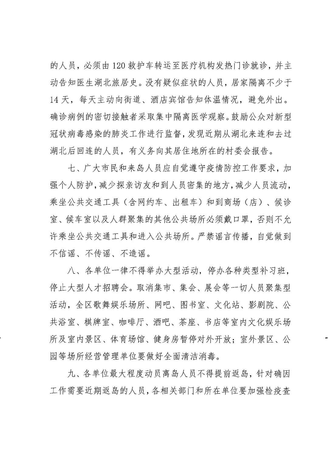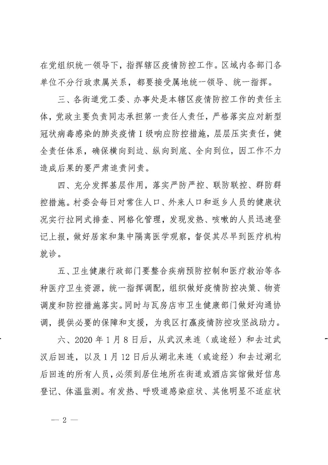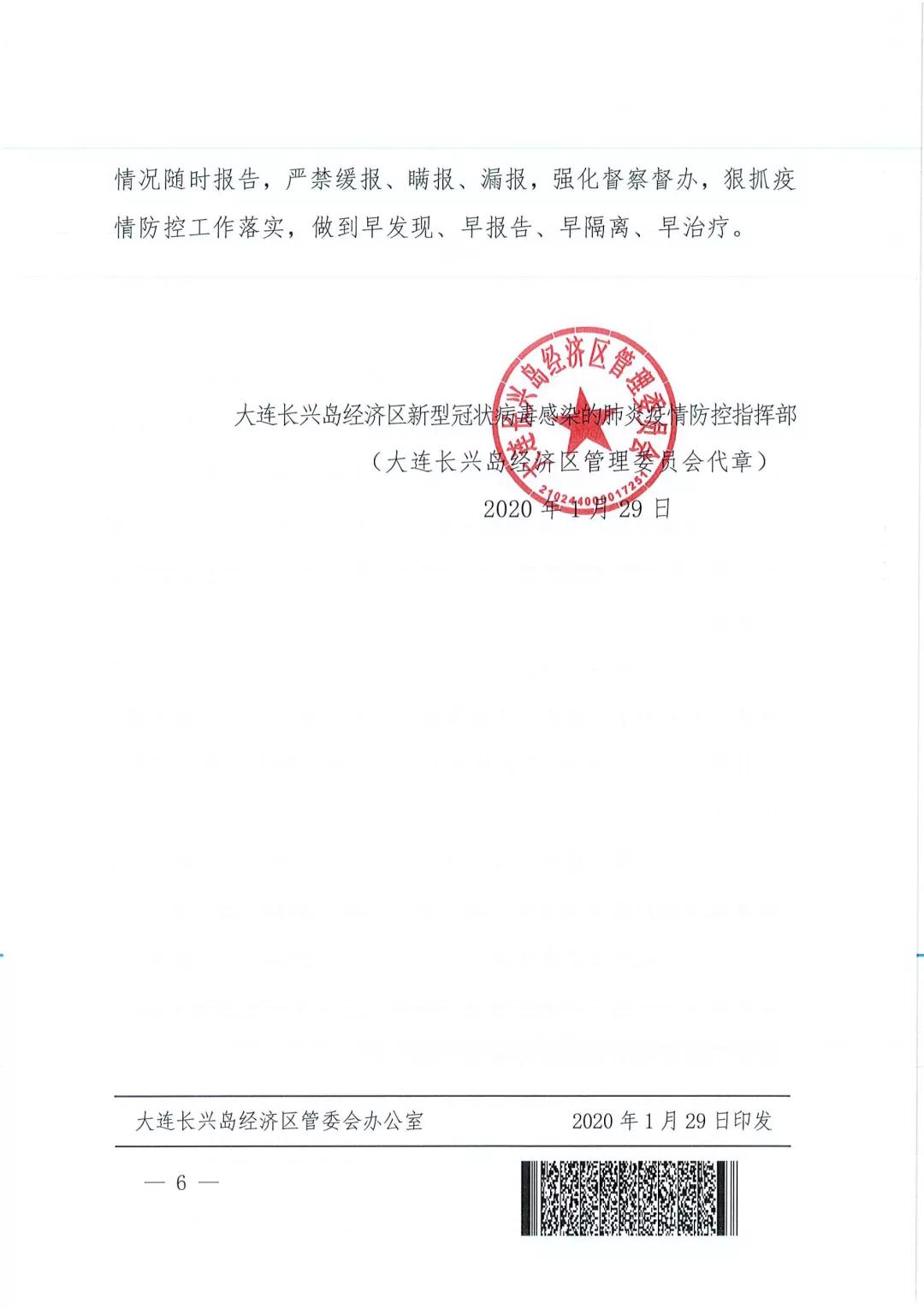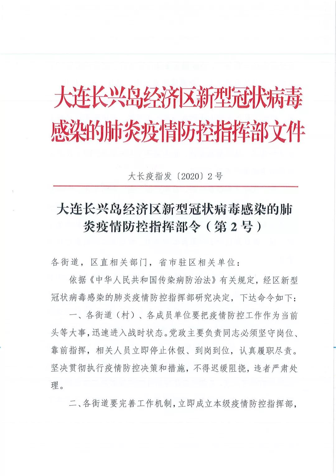 长兴岛经济区新型冠状病毒感染的肺炎疫情防控指挥部发布2号令