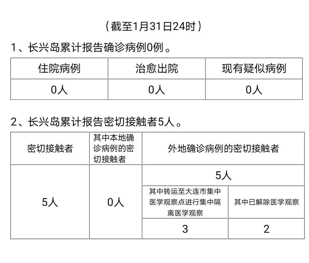 大连长兴岛经济区新型冠状病毒感染的肺炎疫情最新情况(截至1月31日24时)