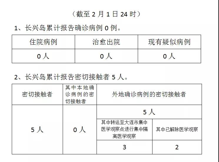 大连长兴岛经济区新型冠状病毒感染的肺炎疫情最新情况(截至2月1日24时)