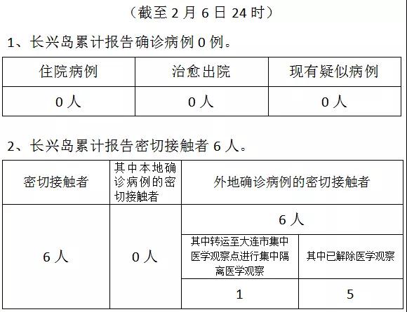大连长兴岛经济区新型冠状病毒感染的肺炎疫情最新情况(截至2月6日24时)