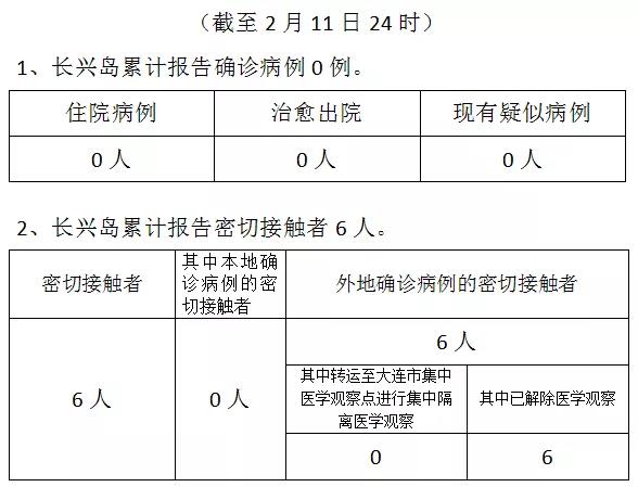 大连长兴岛经济区新型冠状病毒感染的肺炎疫情最新情况(截至2月11日24时)