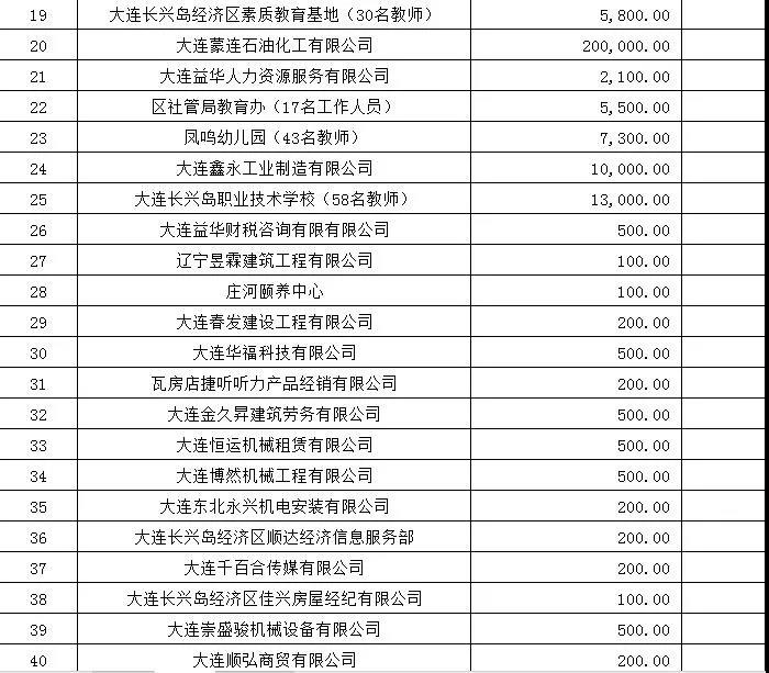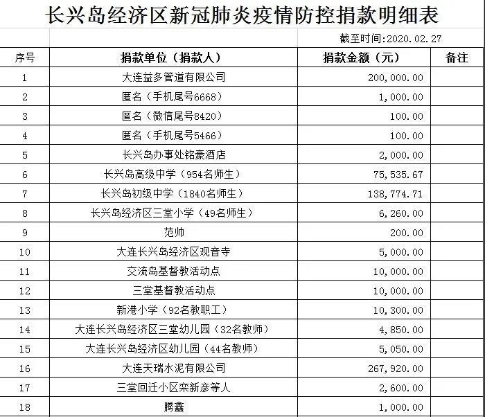 2月12日-2月27日长兴岛经济区新冠肺炎疫情防控捐款明细