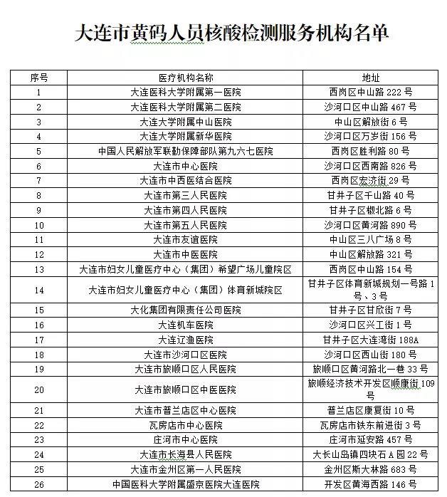 大连市黄码人员核酸检测机构名单