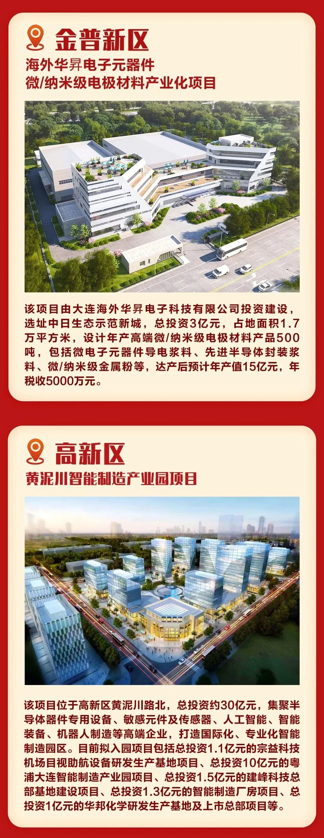 当天,庄河核电(绿能)产业园项目、金普新区海外华昇电子元器件微/纳米级电极材料产业化项目、高新区黄泥川智能制造产业园项目、普兰店区海水制氢产业一体化示范项目等一批重点项目同时开工。