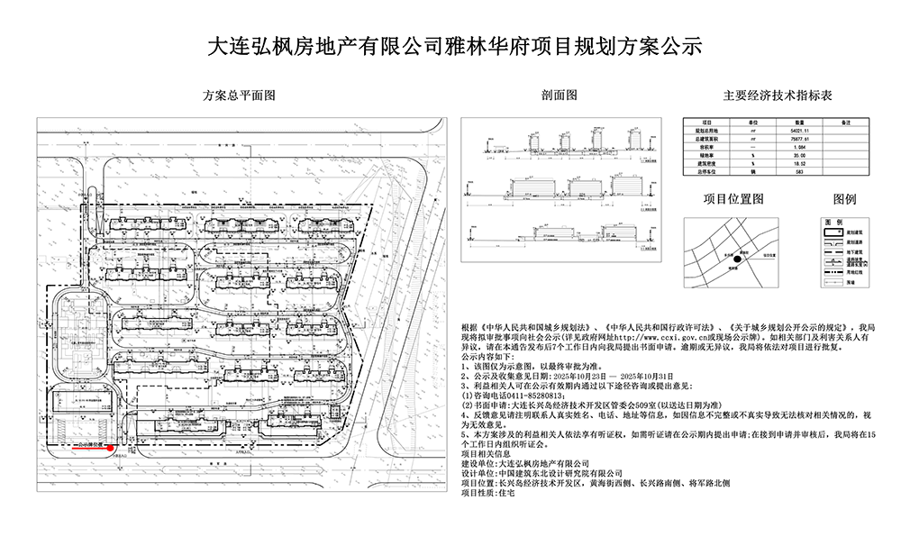 大连弘枫房地产有限公司雅林华府项目规划方案公示