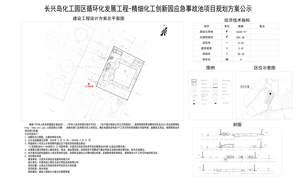 长兴岛化工园区循环化发展工程-精细化工创新园应急事故池项目规划方案公示