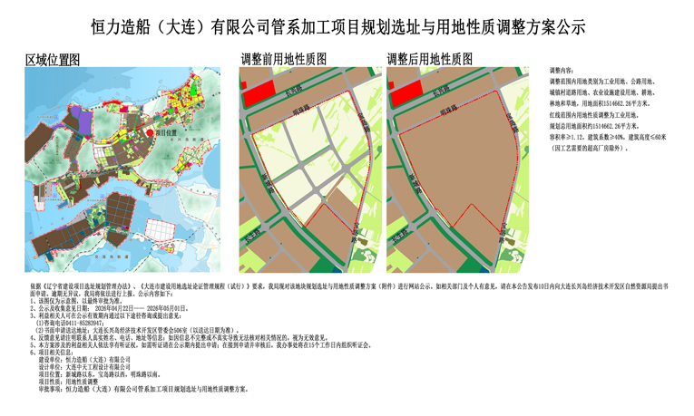 恒力造船(大连)有限公司管系加工项目规划选址与用地性质调整方案公示