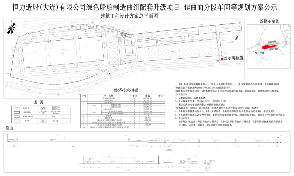 恒力造船(大连)有限公司绿色船舶制造曲组配套升级项目-4#曲面分段车间等规划方案公示