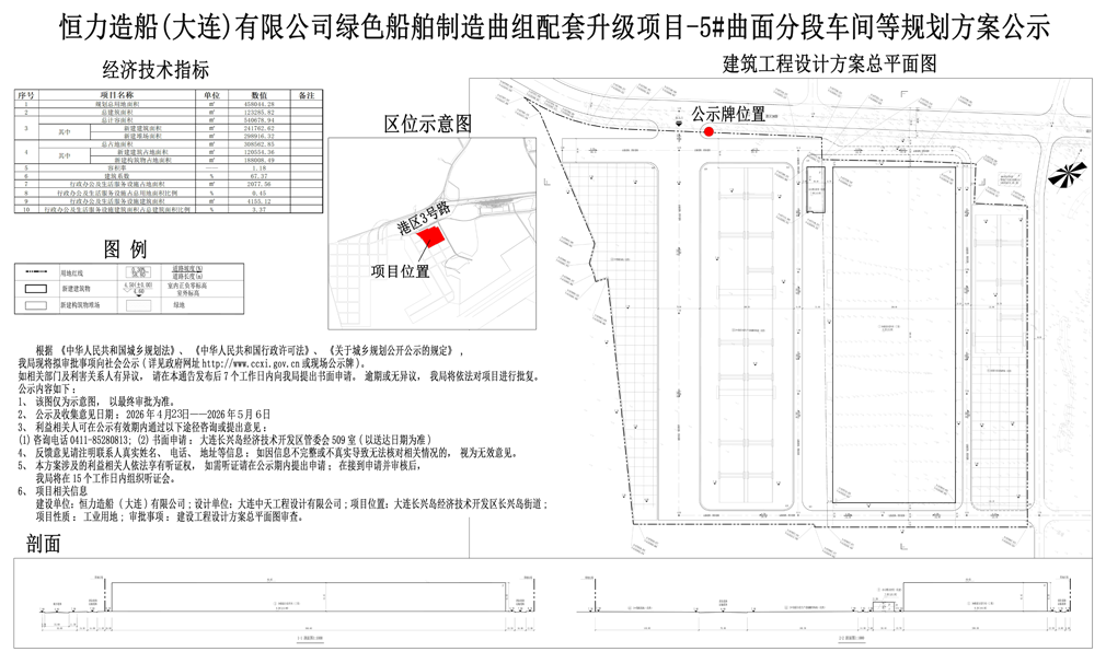 恒力造船(大连)有限公司绿色船舶制造曲组配套升级项目-5#曲面分段车间等规划方案公示